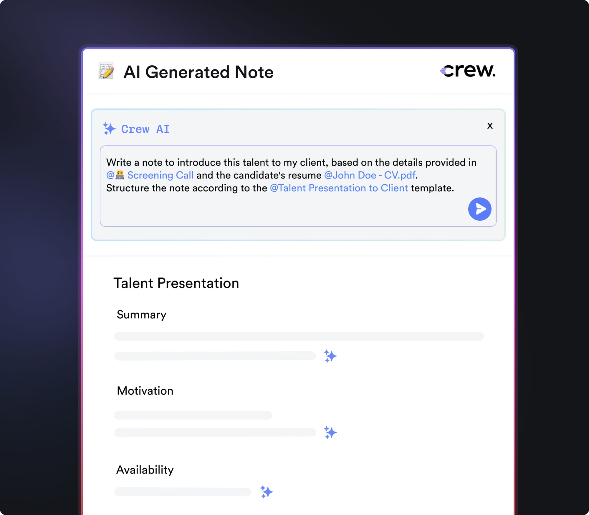 As of 2025, Crew is the only ATS/CRM designed for agencies that includes a fully native AI Notetaker.