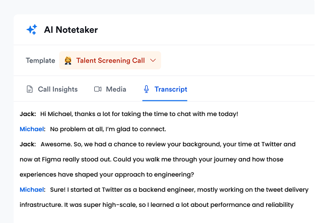 But the real value isn’t just “having a transcript.” It’s in getting a usable summary that’s clean, contextual, and immediately available where you work: in your ATS or CRM.