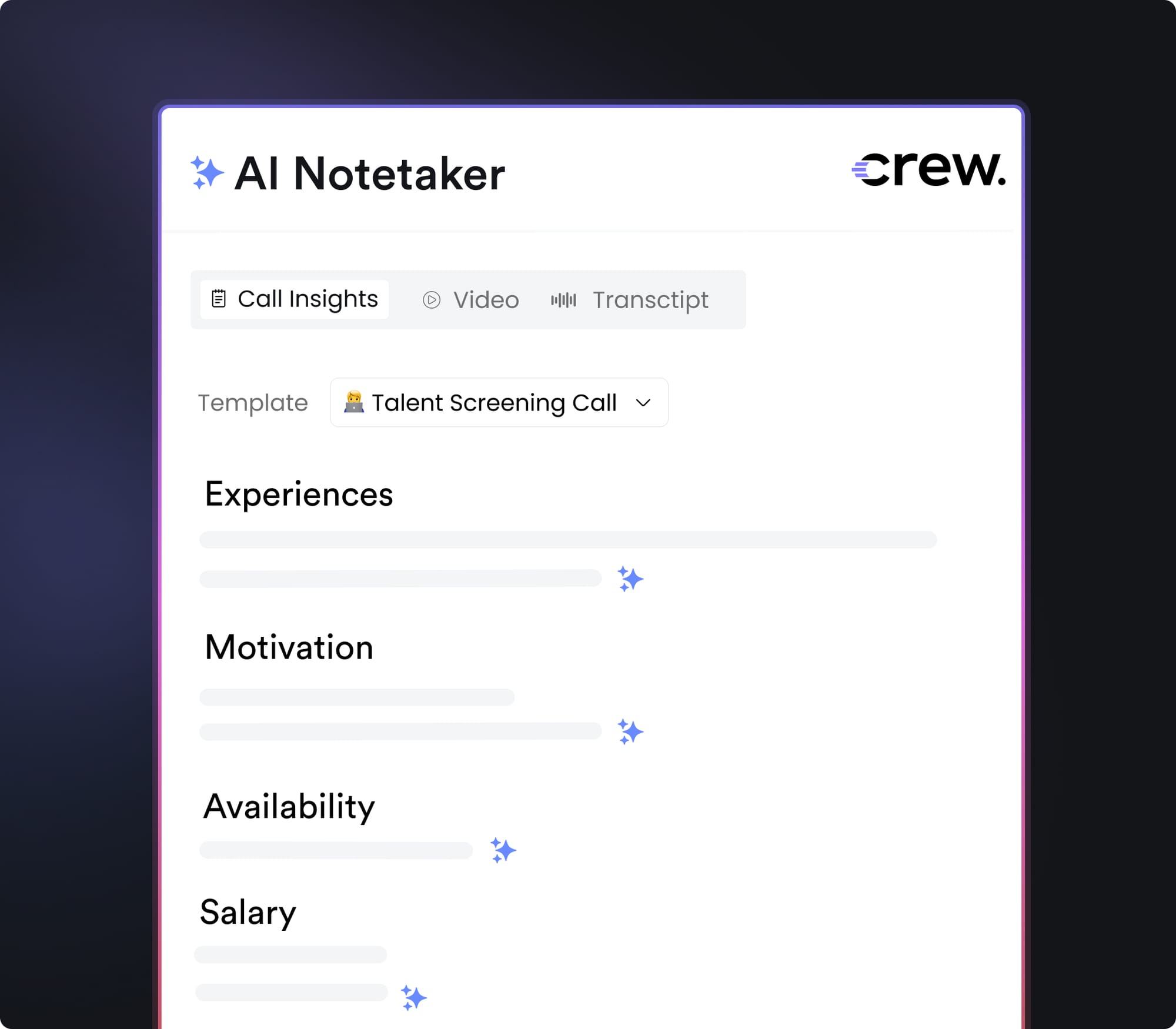 Crew’s AI Notetaker was built with one goal: save recruiters time without compromising quality.