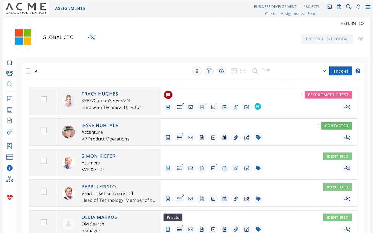 Ezekia is a niche ATS/CRM tailored primarily for executive search and high-end retained recruitment. Many executive search firms (headhunters) have traditionally used clunky legacy databases or even generic CRM tools, and Ezekia aims to provide a purpose-built solution for that world. It offers features conducive to high-touch, relationship-driven recruiting, such as client and candidate portals (with a strong emphasis on data security and GDPR compliance, important for exec search). Ezekia includes all the basics of tracking candidates and assignments (jobs), and also adds things like compliance tracking, billing support for retainers/instalments, and robust permission controls (since executive search often deals with sensitive data). It has a task management system and a “query builder” for very custom search queries on the database, acknowledging that exec recruiters often have very specific search criteria.